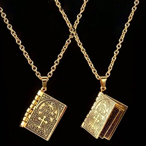 Vintage Religious Holy Bible Book Openable Pendant Necklace for Office WomenMen Gold Plated Zinc Alloy Factory Price Link